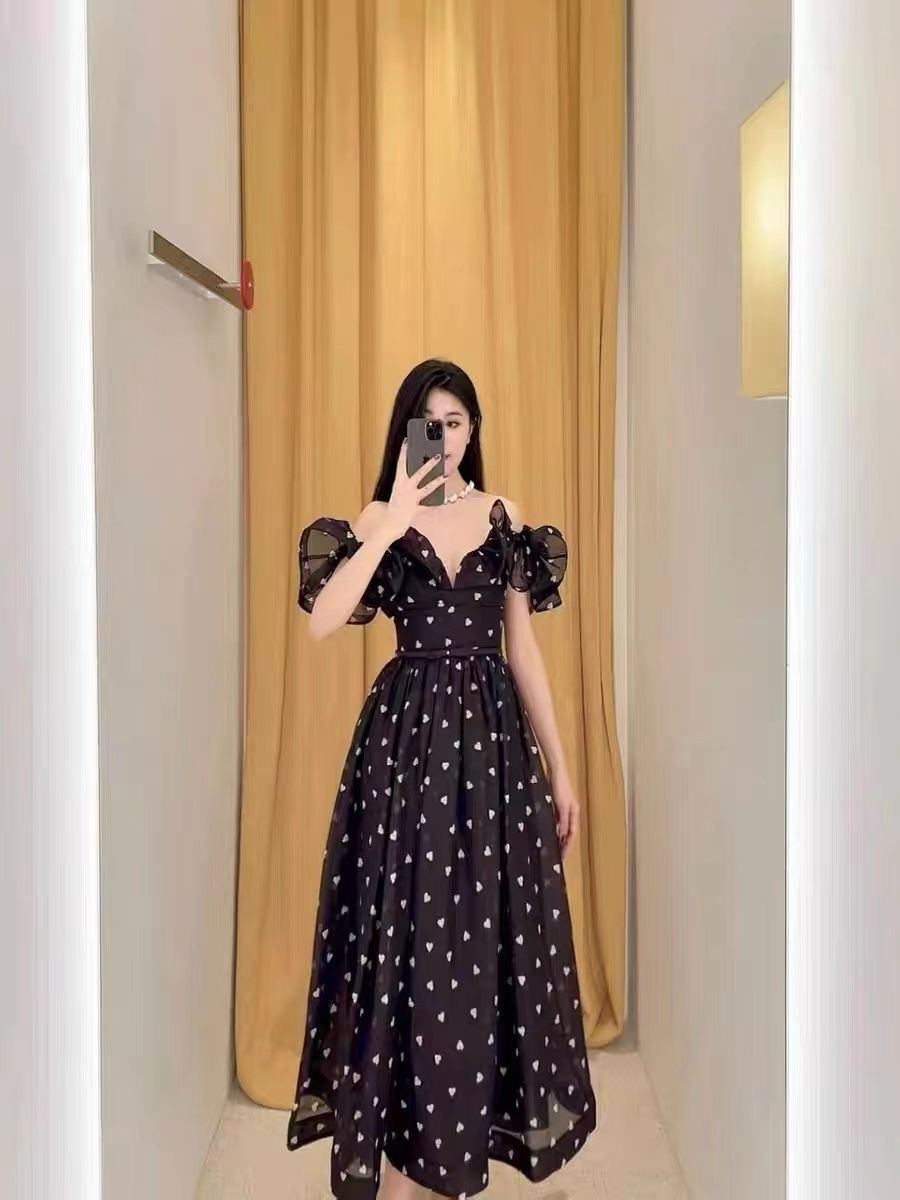 - Flattering Fit: The V-neckline and puff sleeves enhance the feminine silhouette, with a flowy skirt for added elegance.