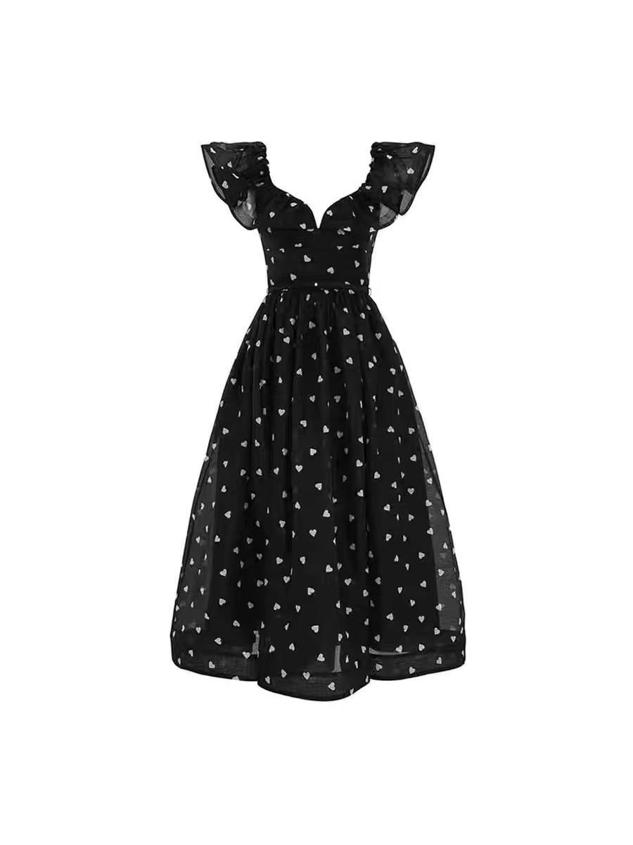 Add a fun and feminine touch to your wardrobe with this Polka Dot Puff Sleeve Midi Dress. The dress features a flattering V-neckline, puff sleeves, and a full skirt that creates a playful, yet elegant silhouette. The white polka dots against the black fabric bring a classic, timeless appeal, while the flowing design provides comfort and movement. Perfect for any casual or semi-formal occasion.